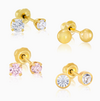 *Service not performed in all locations. A parent or legal guardian must be present for the duration of the appointment for anyone under the age of 18. Minimum age to receive service is 3 months. All earrings are made of hypoallergenic materials and premium metals, such as 24 karat gold or stainless steel. **Single piercings only available in the 2mm sized earring. If multiple 2mm earrings are necessary to complete the look, the service charge will increase based on the number of earrings.