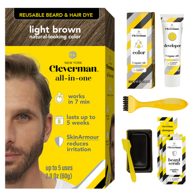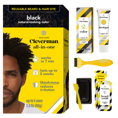 - Cleverman Reusable Beard & Hair Dye Kit - Up to 5 Uses, 7-Min Natural Gray Coverage with SkinArmour9 colors