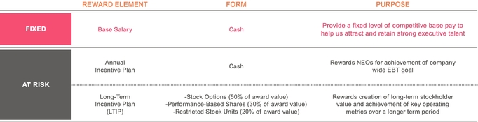 We believe that the fiscal 2017 compensation of our NEOs was appropriate and aligned with the Company's performance. We urge stockholders to read the CD&A section of this Proxy Statement, as well as the Summary Compensation Table and the related tables and disclosures, for a more complete understanding of how our executive compensation policies and procedures operate.