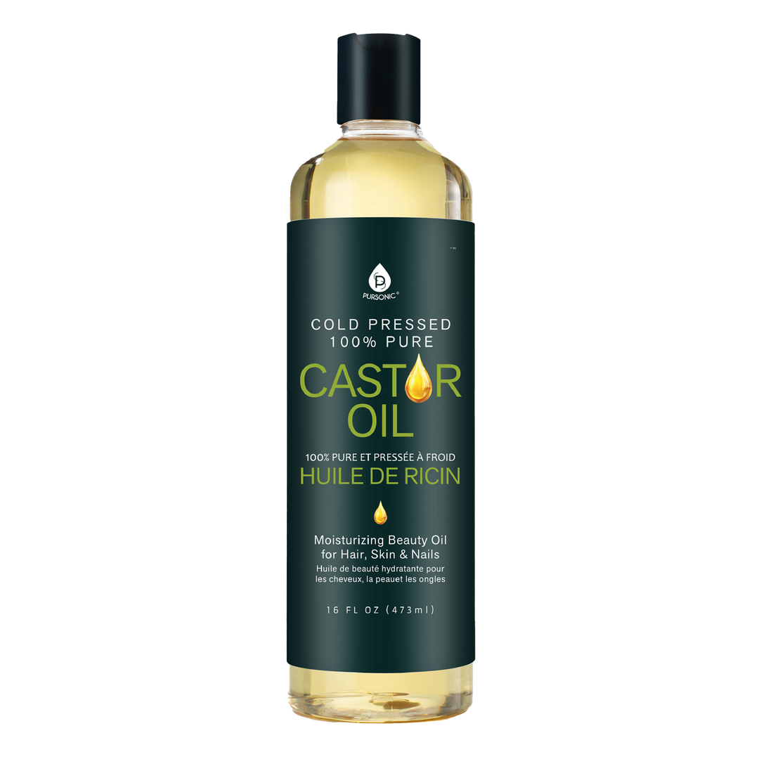 Pursonic Castor oil (16 oz) cold-pressed, 100% pure, hexane-free castor oil, moisturizing & healing. Perfect for dry skin, hair growth, hair care & eyelashes.