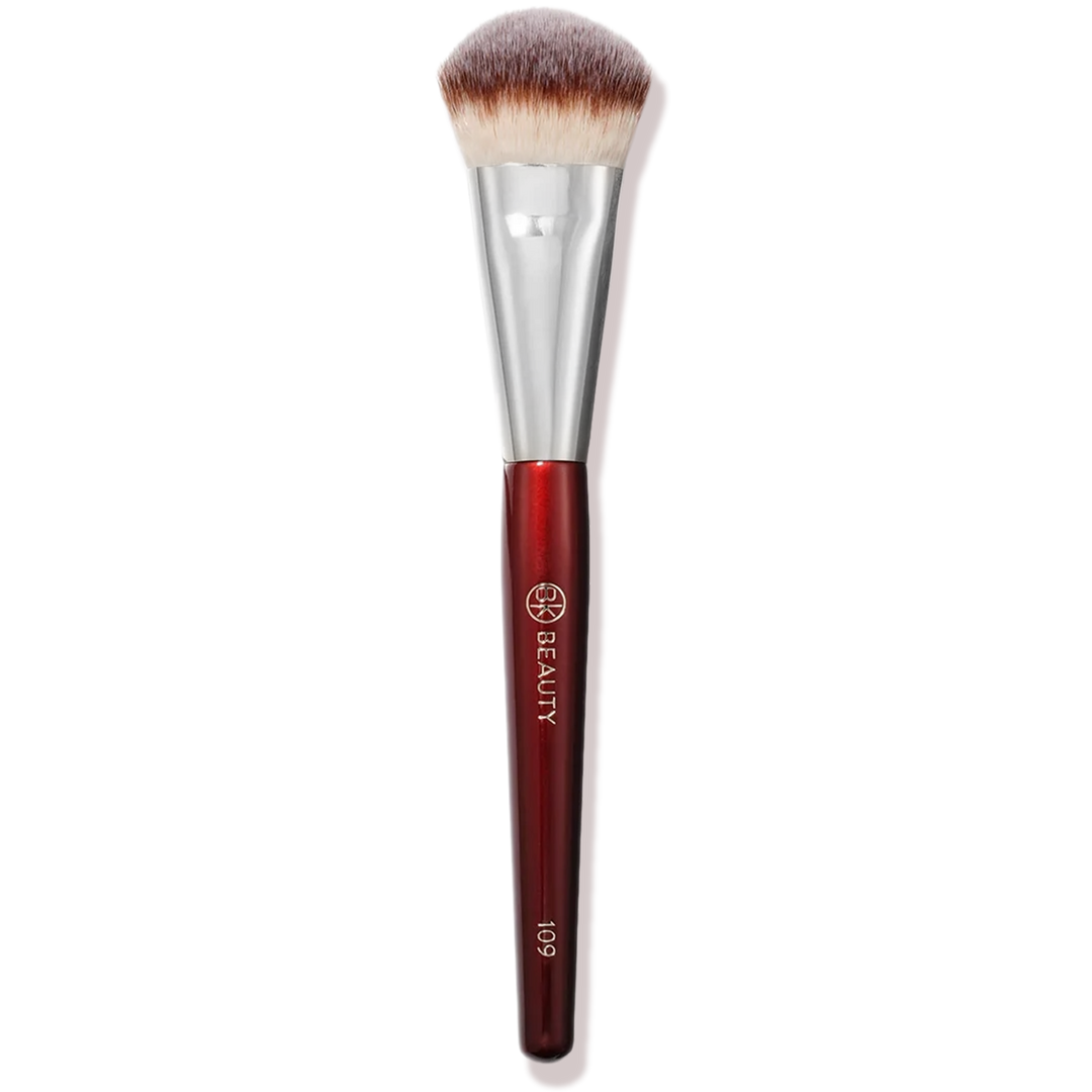 Compact version of the cult-classic 101, the BK Beauty 109 Mini Contoured Foundation Brush blends cream and liquid foundation and concealer for smaller faces. Multitasks for cream contour, bronzer, blush and highlighter.