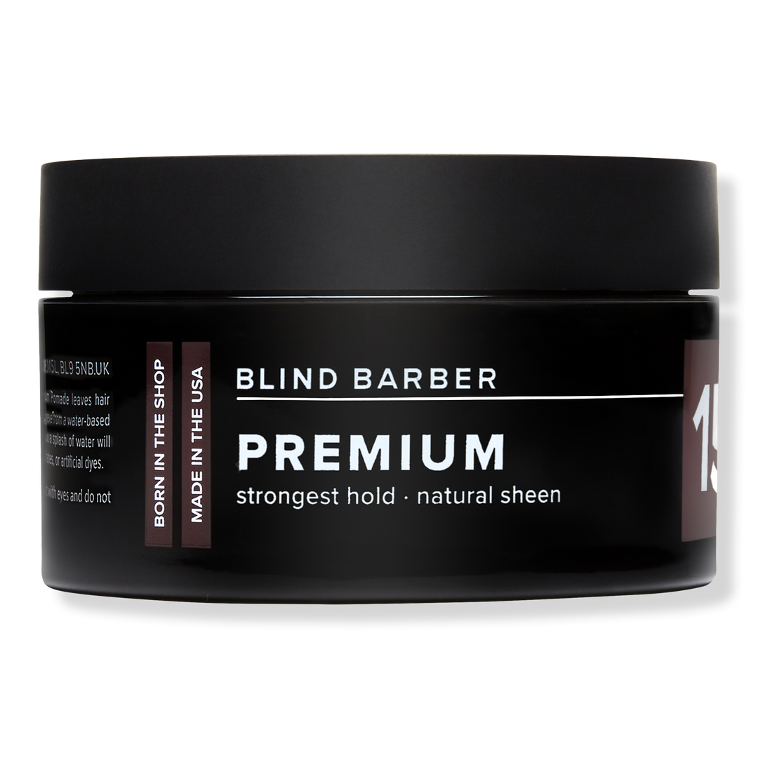 Blind Barber 151 Proof Premium Pomade, infused with hops (yes, from beer), leaves hair with the strongest hold and most natural sheen you can achieve from a water-based pomade. It may feel like you have beeswax in your hair, but a splash of water will allow for restyling or rinsing completely.