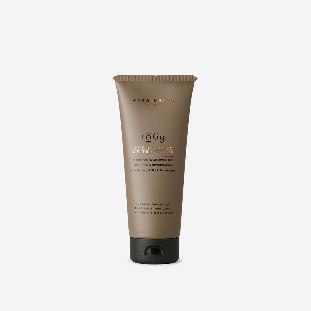Infused with ginseng and black tea extracts, Acca Kappa 1869 Shampoo & Shower Gel cleanses and revitalizes hair and skin. Its antioxidant-rich, SLS-free formula nourishes while the warm notes of leather, vanilla, and amber evoke timeless Italian elegance in every wash.