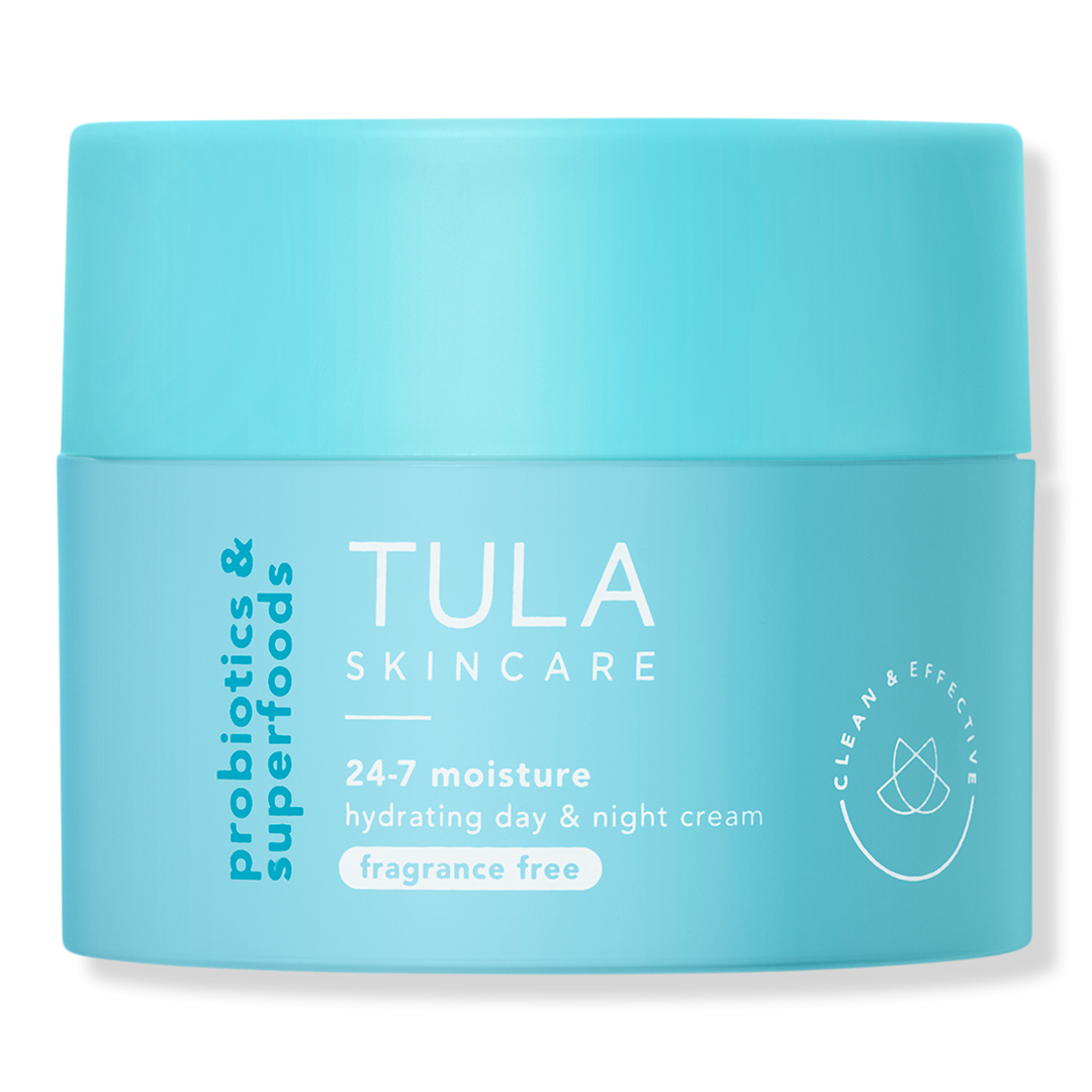 TULA's bestselling 24-7 Moisture Hydrating Day & Night Cream is now available in fragrance free. Powered by hyaluronic acid, apple, watermelon, peptides & squalane to provide all-day hydration.