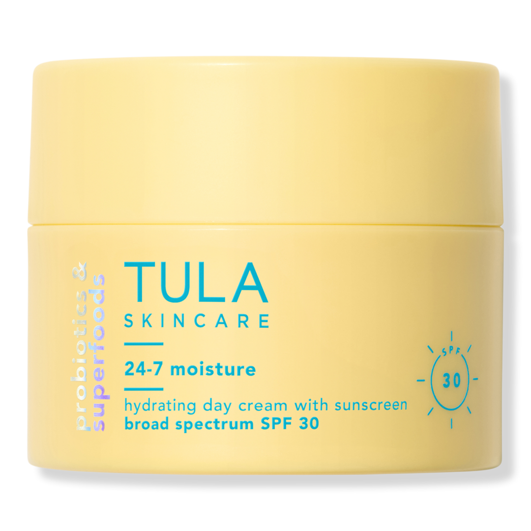The TULA 24-7 Moisture Hydrating Day Cream with SPF 30 is a lightweight daily sunscreen that reveals healthier, plumper & more youthful-looking skin while protecting from the damaging effects of UVA/UVB rays, blue light & pollution.