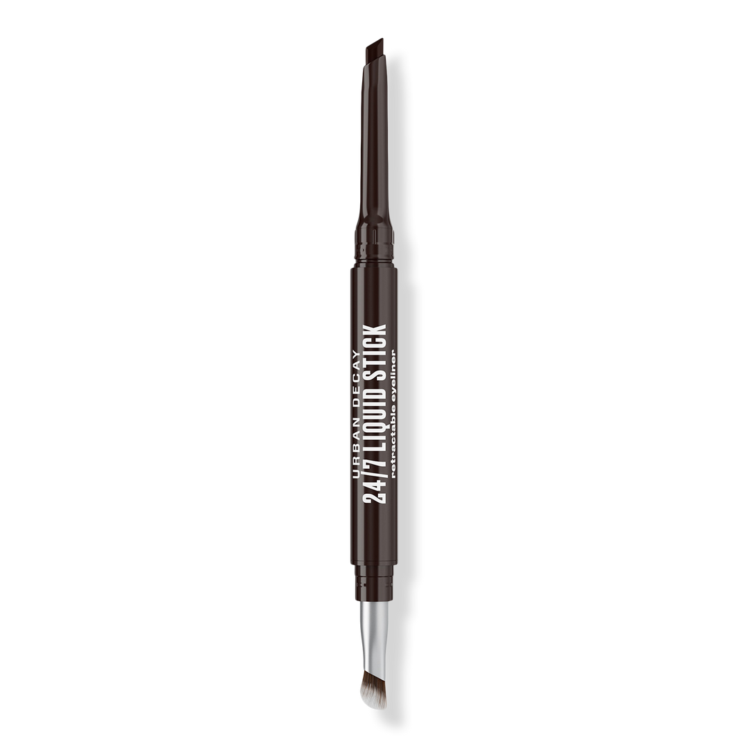 Urban Decay 24/7 Liquid Stick Eyeliner offers liquid-rich precision in a retractable dual-ended design with a slanted tip, fluffy blending brush, and up to 24-hour wear.