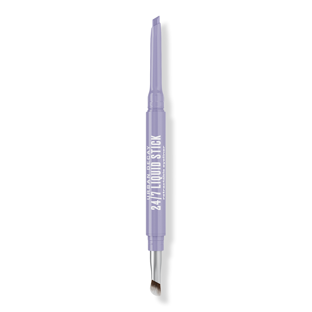 Urban Decay 24/7 Liquid Stick Eyeliner offers liquid-rich precision in a retractable dual-ended design with a slanted tip, fluffy blending brush, and up to 24-hour wear.