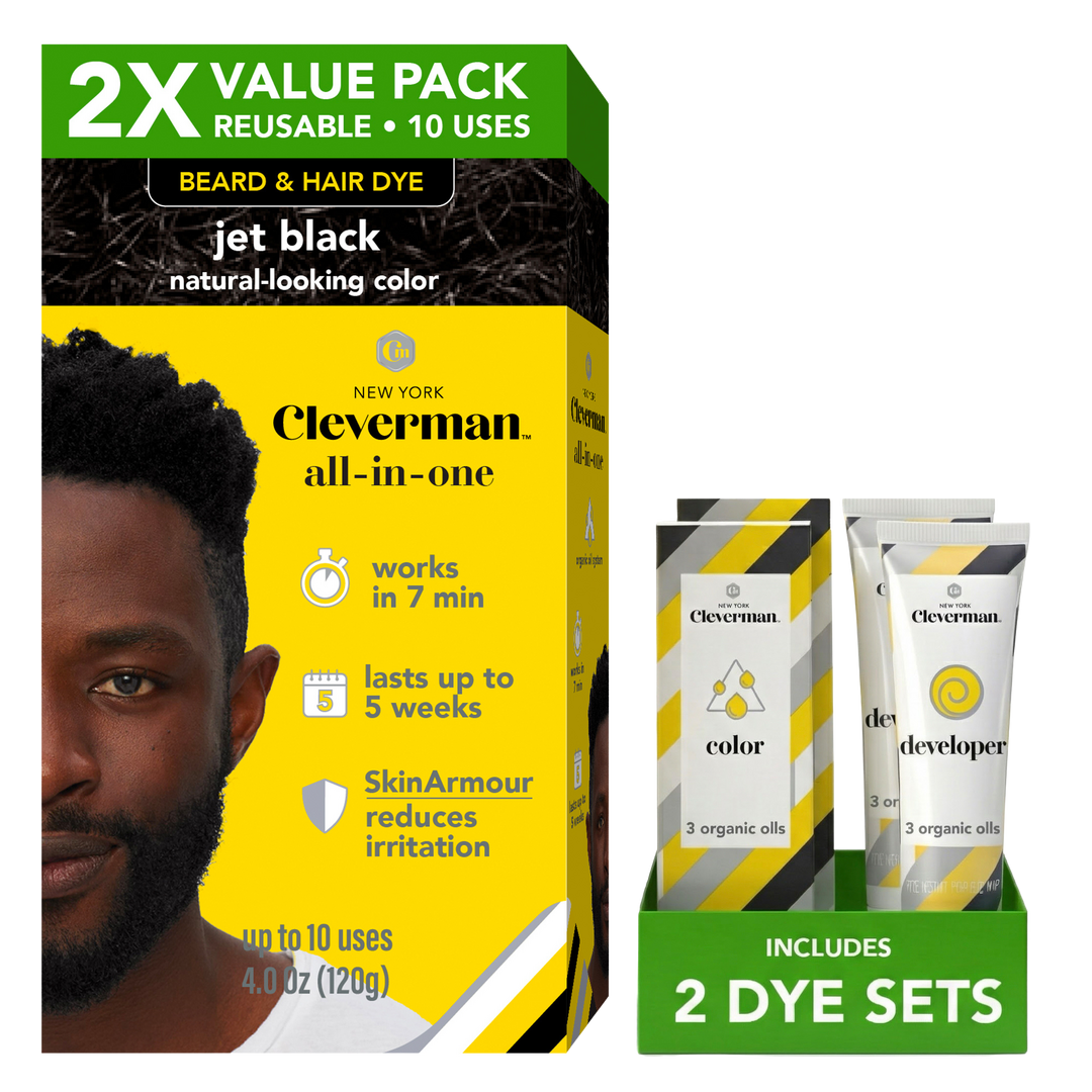 - 2X Full-Size Color Kit: The Cleverman 2X Pack delivers double the color and developer for extended use, offering the same professional-quality, natural-looking gray coverage as our standard kit but with twice the product. Ideal for men who color consistently or need more formula for both hair and beard, this upgraded set provides greater value and longer-lasting maintenance without sacrificing the clean, ammonia-free formula you love.