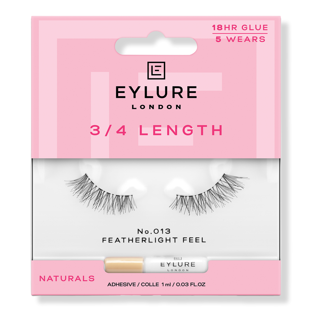 Get the soft texture and volume you crave more quickly than ever with Eylure Âľ Length Accent No. 013 Featherlight Feel Eyelashes. A cute, angled Âľ length lash with a wispy finish that adds gorgeous definition to your eyes. Featuring shorter lash bands, perfect for first-time lash users.