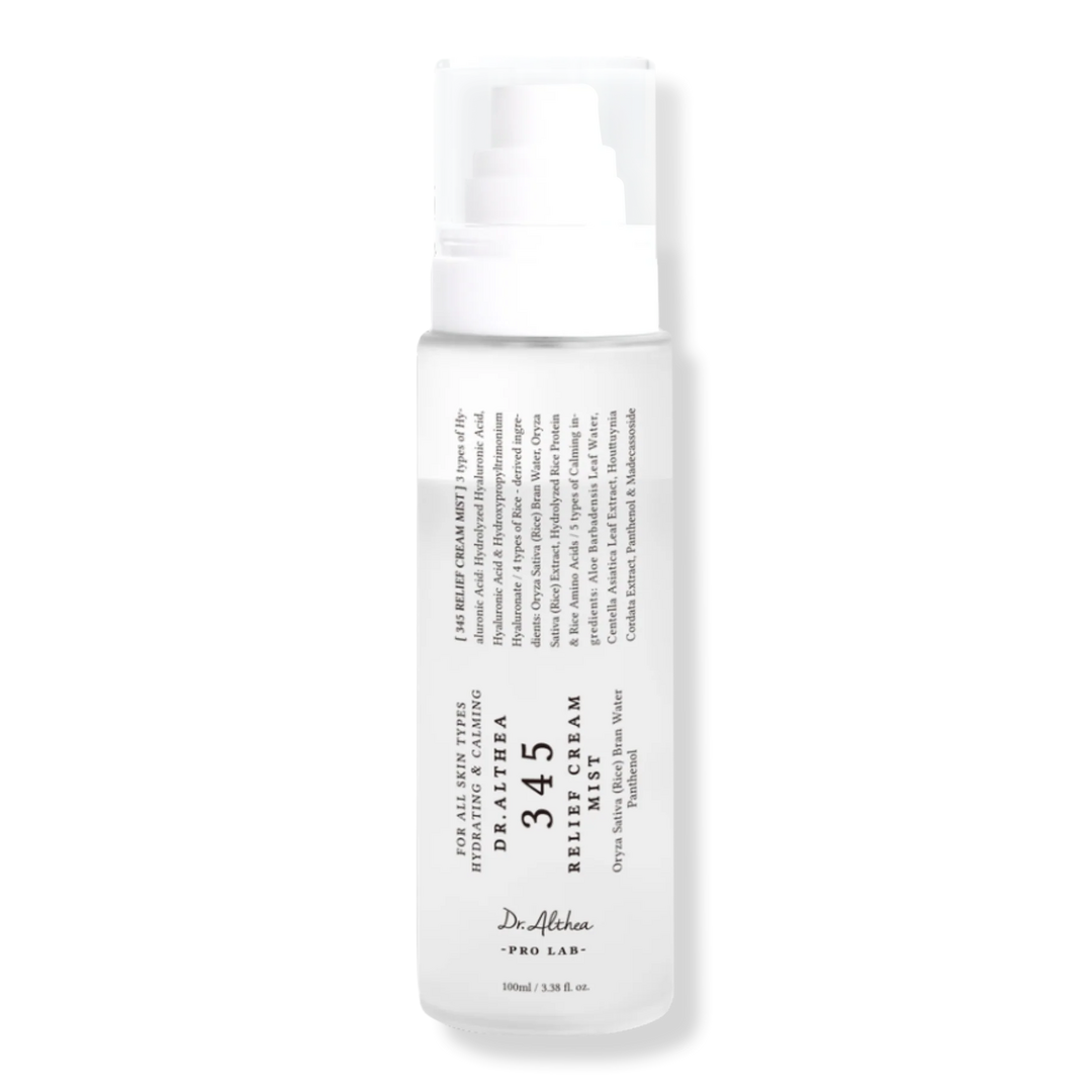 Dr. Althea 345 Relief Cream Mist, formulated with Hyaluronic Acid, instantly replenishes dry skin with deep moisture, providing long-lasting hydration and comfort throughout the day.