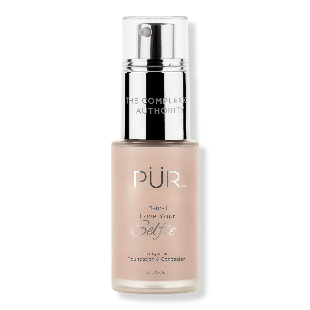 PÜR's 4-in-1 Love Your Selfie Longwear Foundation & Concealer delivers full coverage with skincare benefits. This clean formula features a dual applicator system for customized application.