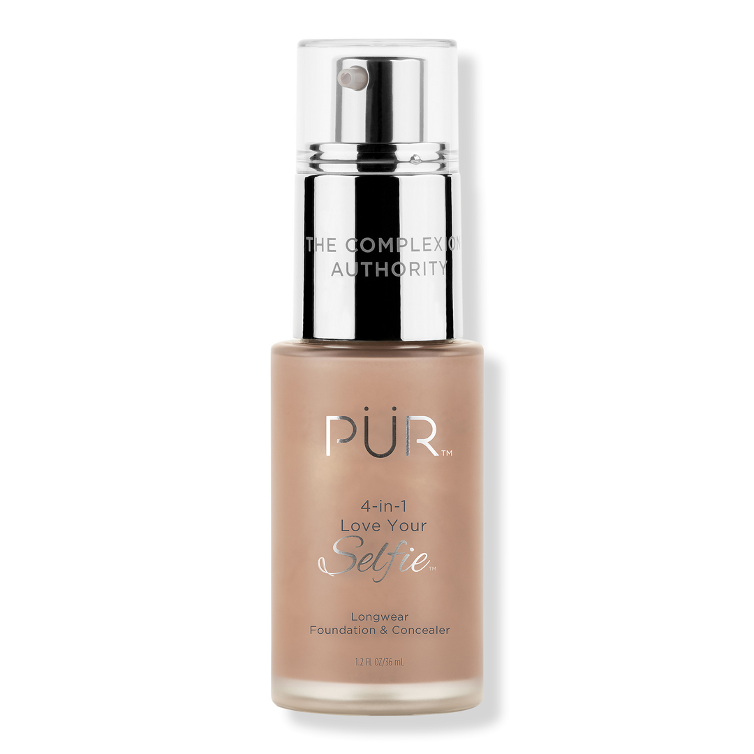 PÜR's 4-in-1 Love Your Selfie Longwear Foundation & Concealer delivers full coverage with skincare benefits. This clean formula features a dual applicator system for customized application.