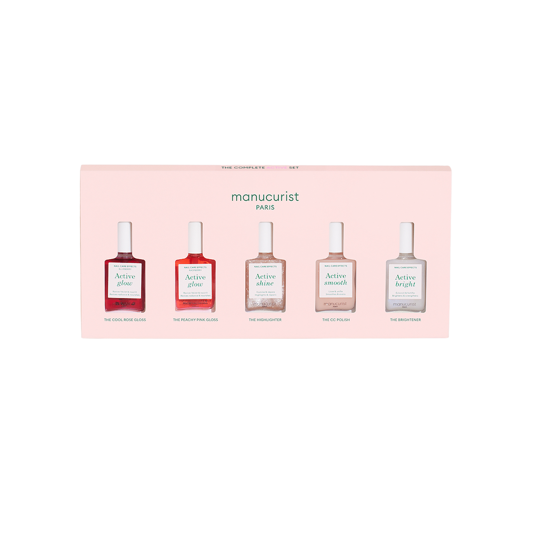 - Complete Manucurist Active Glow collection: clear pink nail polish Raspberry Active Glow, cool-rose nail polish Blueberry Active Glow, shiny nail polish and highlighter Active Shine, nail concealer polish Active Smooth, nail brightener and nail whitener Active Bright. Thanks to their unique, innovative formulas, every Active deeply nourishes all nail types and enhances shine.
