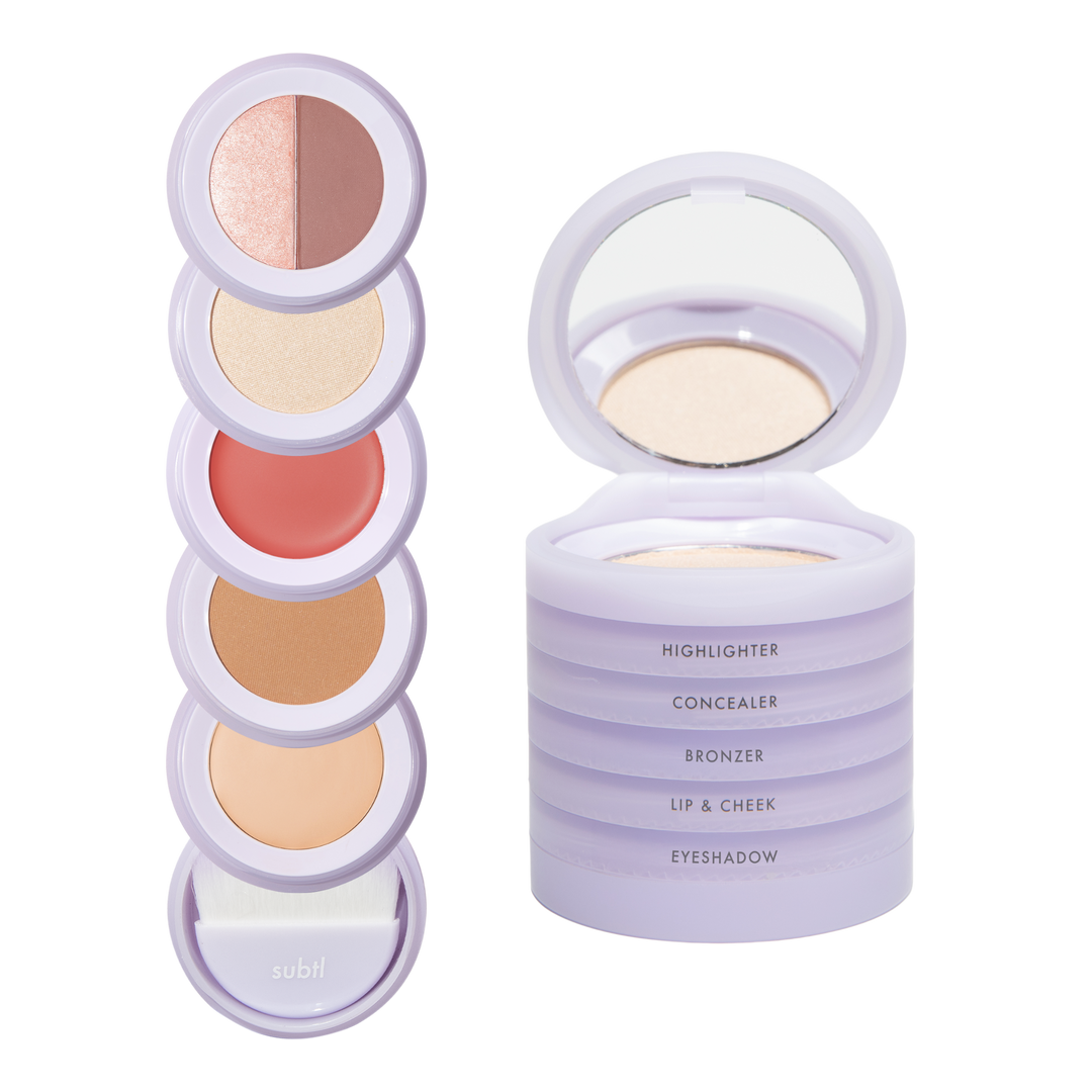 Your all-in-one stackable set for a full face in minutes. Brighten with concealer, add warmth with bronzer, sweep on eyeshadow, and finish with lip, cheek, and highlighter. Kit complete with travel mirror and mini brush for effortless application anytime, anywhere.