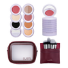 - Includes concealer, bronzer, lip and cheek tint, eyeshadow duo, highlighter, lip glaze, and essential tools