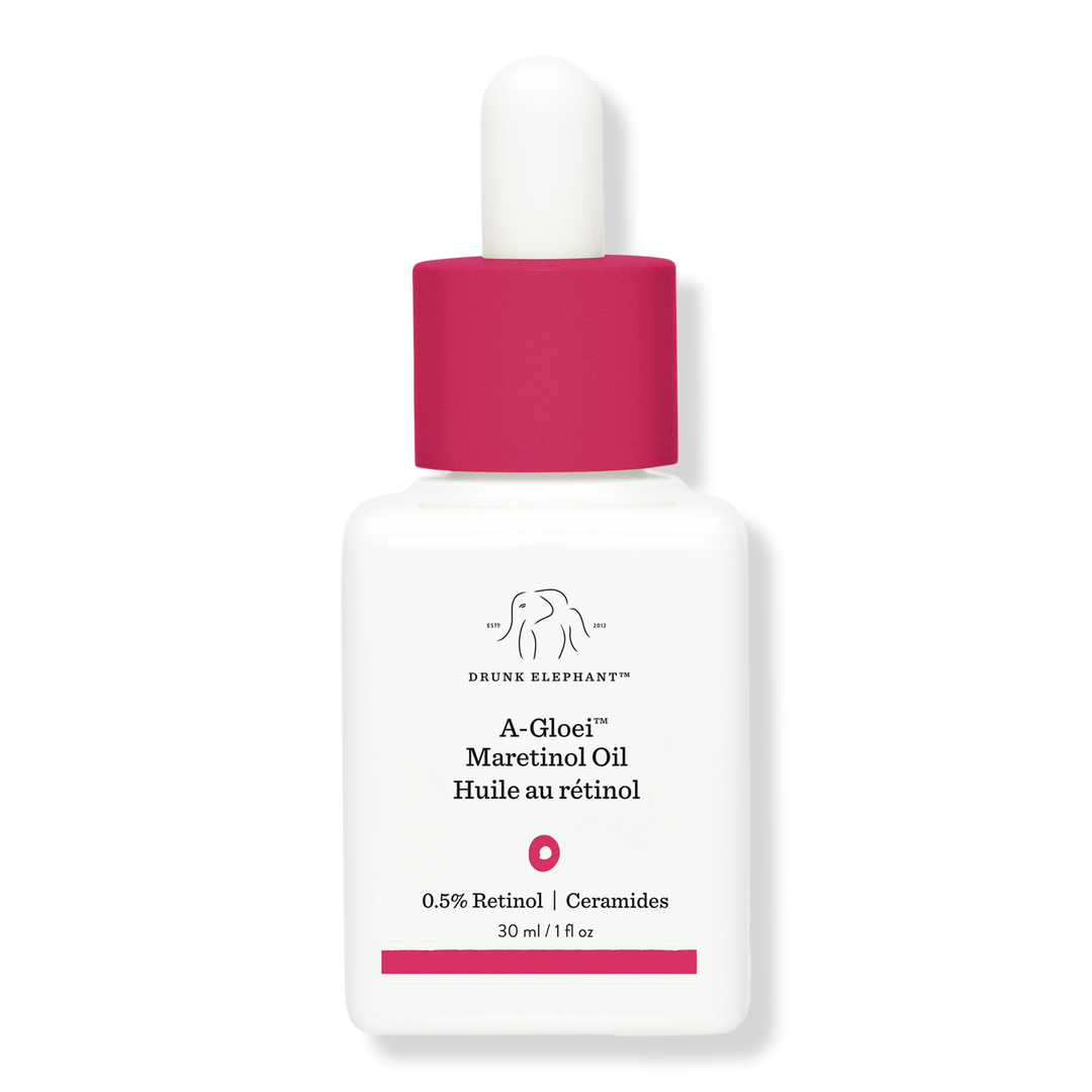 Drunk Elephant A-Gloei Marula + Retinol Oil is a skin-smoothing treatment that combines vegan retinol, virgin marula oil, and ceramides to refine skin's texture and minimize the appearance of lines, hyperpigmentation, blemishes, and sun damage while locking in moisture and restoring a healthy glow.