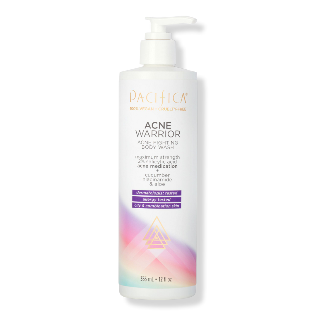 The Pacifica Acne Fighting Body Wash With 2% Salicylic Acid features 2% salicylic acid plus cucumber, niacinamide and aloe to combat body acne while hydrating & soothing skin.