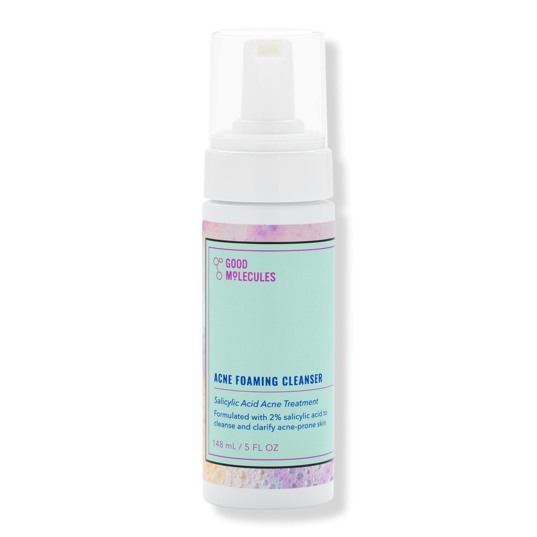 Treat acne and breakouts with this exfoliating cleanser from Good Molecules. The Acne Foaming Cleanser is a fluffy foaming cleanser powered by 2% salicylic acid - an anti-inflammatory and antimicrobial ingredient that exfoliates on the skin's surface and deep within pores.