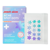 Peach Slices #1 bestseller Acne Spot Dots in limited edition, holographic snowflake design help clear skin in a flurry. Medical-grade hydrocolloid visibly absorbs pimple gunk, creates a healing barrier, and protects from picking, just in time for the holidays. The perfect stocking stuffer.