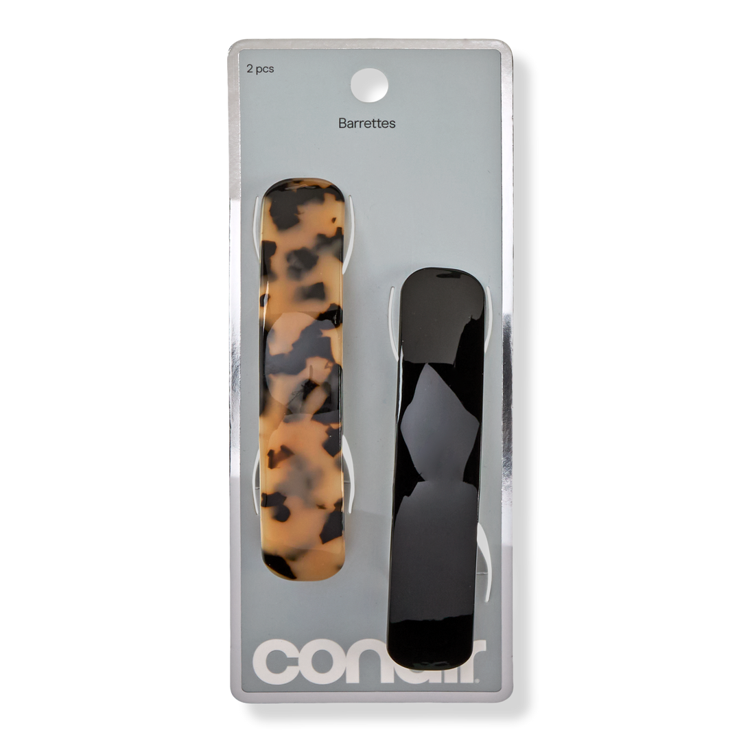 Bring instant style to your hair with Conair acrylic barrettes in classic black and tortoiseshell print. Designed to secure hair with ease, these versatile barrettes are perfect for half-up looks.