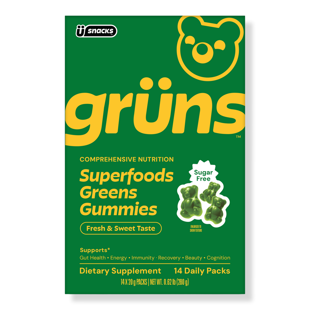 - A Gummy That Fills The Gaps: Grüns Multivitamin Superfoods Greens Gummy Bears deliver fruits, veggies, super mushrooms, prebiotic fiber, and adaptogens. Key vitamins support gut health, immunity, and overall wellness – all in a pack of tasty Strawberry-flavored gummies.