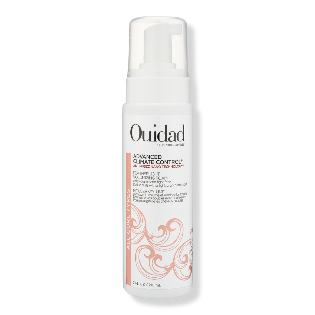 Ouidad's lightweight, aerosol-free Advanced Climate Control Featherlight Volumizing Foam adds lift and a flexible, crunch-free hold for soft, touchable, defined curls.