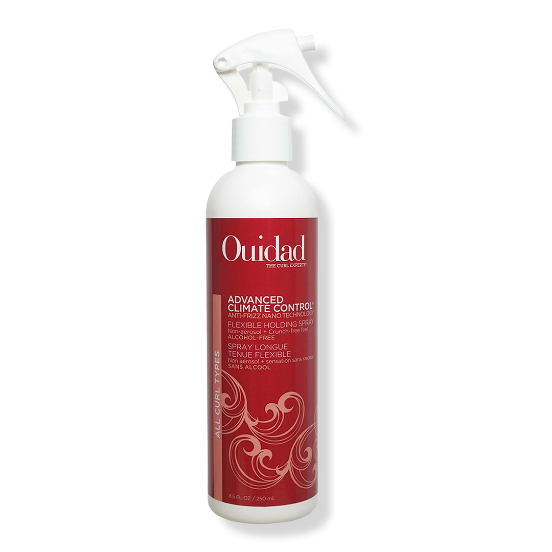 Ouidad Advanced Climate Control Flexible Holding Spray is a non-aerosol, alcohol-free hairspray for curls that provides a lasting, crunch-free hold and helps fight frizz in any climate.