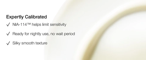 - Skin barrier-strengthening NIA-114 (our patented form of Niacin clinically shown to enhance the efficacy of Retinol) minimizes sensitivity while moisture-binding Polyglutamic Acid helps counteract Retinol's drying side effects