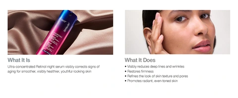 - Starting in just 7 days, visible improvement in*: Lines & Wrinkles Texture & Smoothness Pores Radiance Firmness Overall appearance of skin