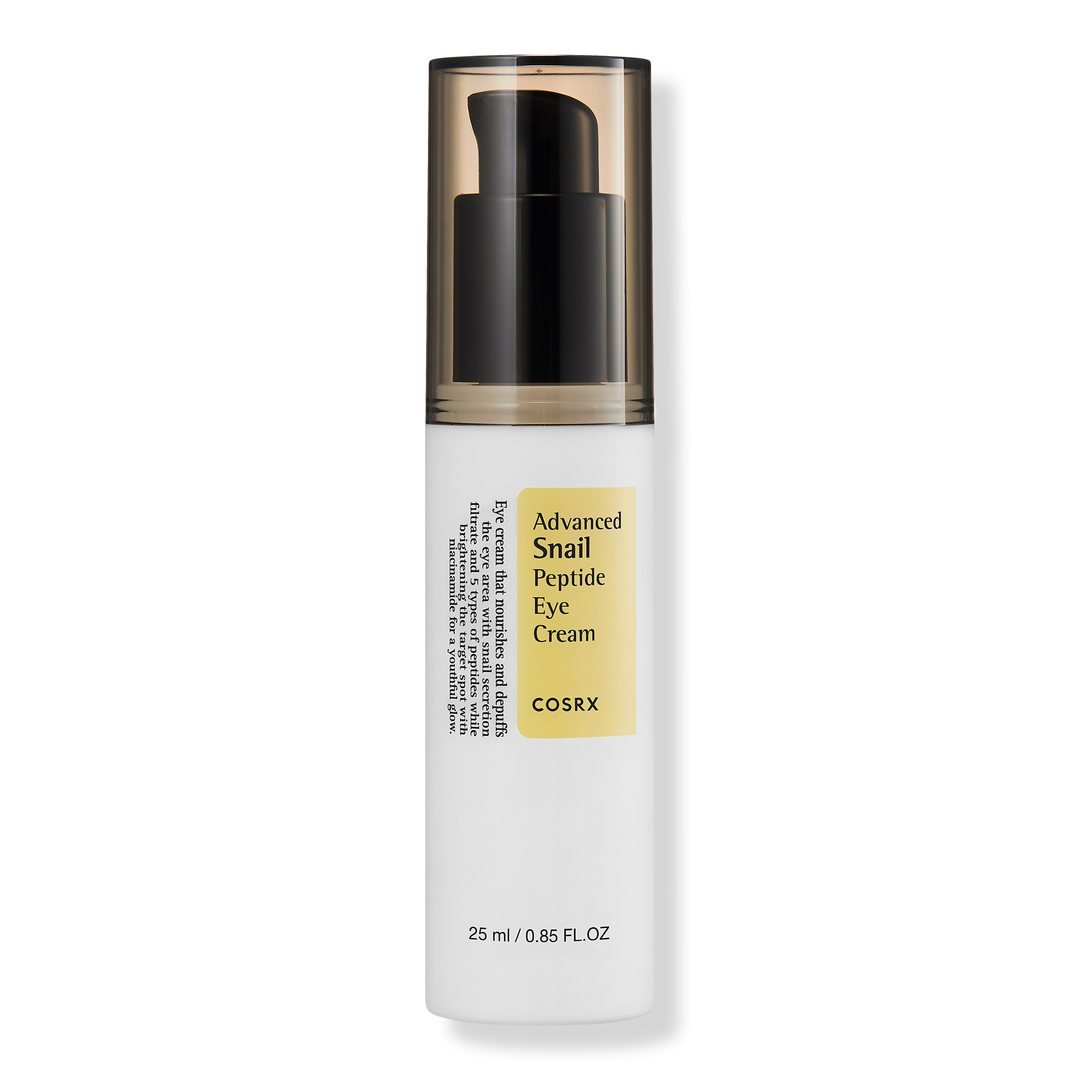The COSRX Advanced Snail Peptide Eye Cream is a lightweight hydrator that brightens, firms and depuffs with 72% snail mucin and anti-aging peptides.