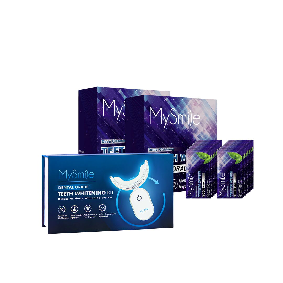 MySmile Advanced Teeth Whitening Kit uses a 28-LED blue light and vegan gel to lift coffee, tea, and other stains in just 10 minutes. The gentle carbamide peroxide formula is FDA-approved and safe for sensitive teeth. See up to 10 shades whiter in 7 days. Includes 200 teeth wipes for on-the-go use.