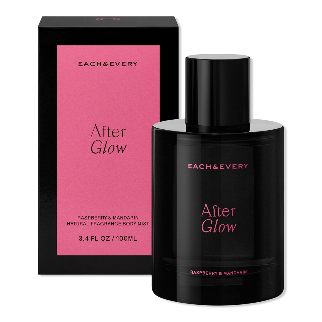 Each & Every After Glow Raspberry & Mandarin Natural Fragrance Body Mist. Fine fragrance ingredients in a luxurious glass bottle, formulated as a mist for daily luxury. Bask in the after glow of a night well lived.