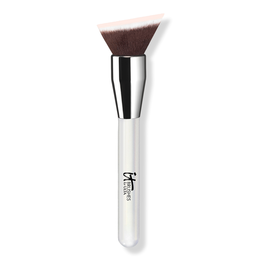 IT Brushes For ULTA Airbrush Full Coverage Complexion Brush #77 features a unique triangle-shaped brush head that contours to your individual face shape, reaching both large and small areas for a smooth and even application.