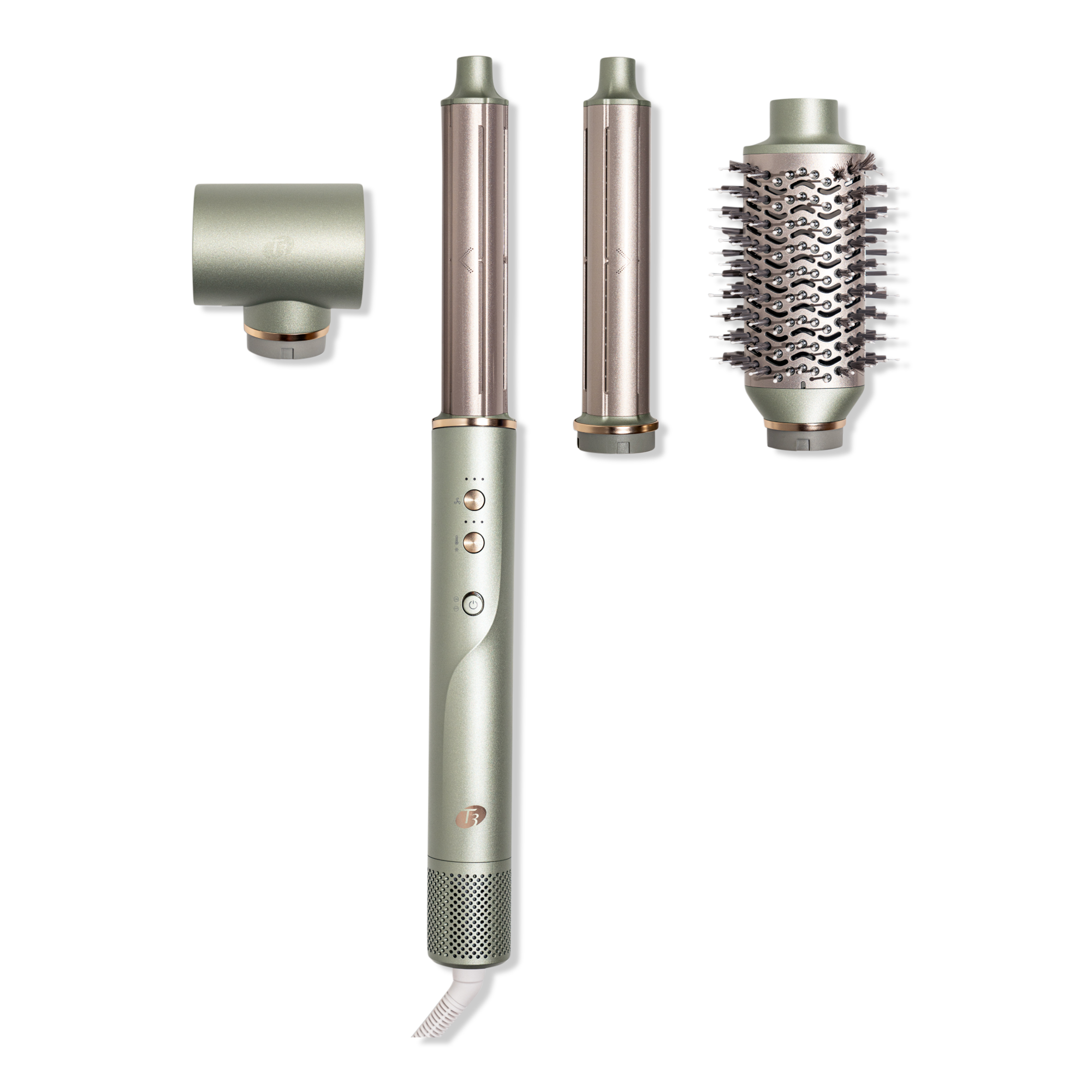 Featuring high-performance heat and ceramic attachments, T3's Aire 360 Ceramic Air Styler Blowout Kit styles bouncy blowouts and lasting curls with zero heat damage.* Superior airflow wraps hair effortlessly, and extra-long ceramic curling attachments deliver blowout curls that defy gravity.