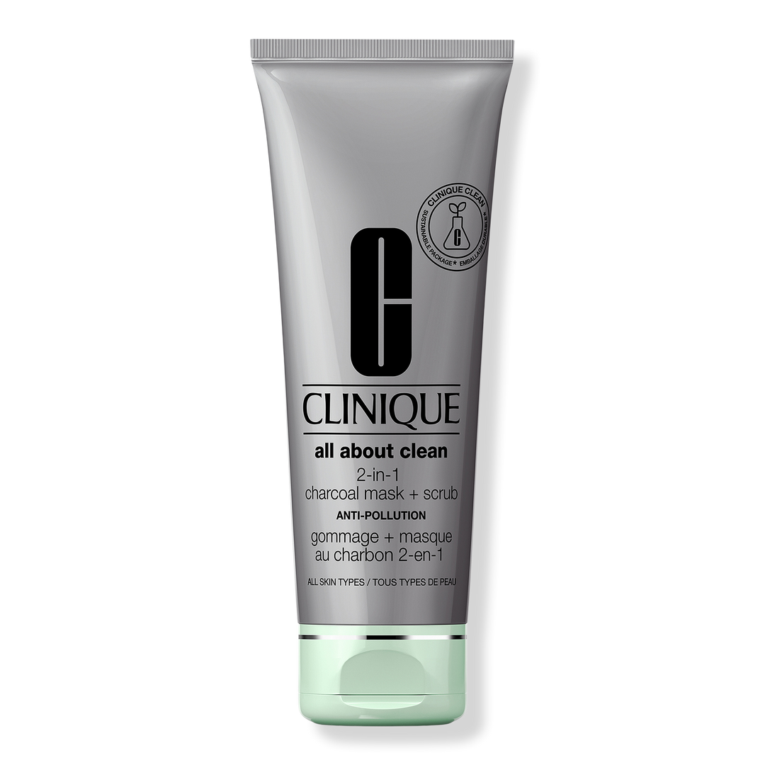 Clinique 2-in-1 Charcoal Mask + Scrub is a dual-action purifying formula that helps remove pollution, impurities, and excess oil, plus refines texture.