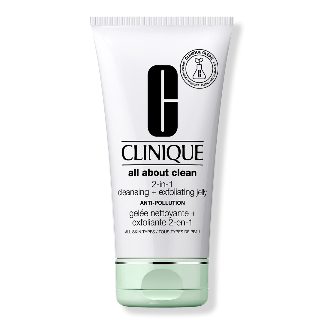 Clinique All About Clean 2-in-1 Face Cleansing + Exfoliating Jelly Cleanser is a deep-cleaning gel face cleanser that helps remove buildup from pollution and other impurities.