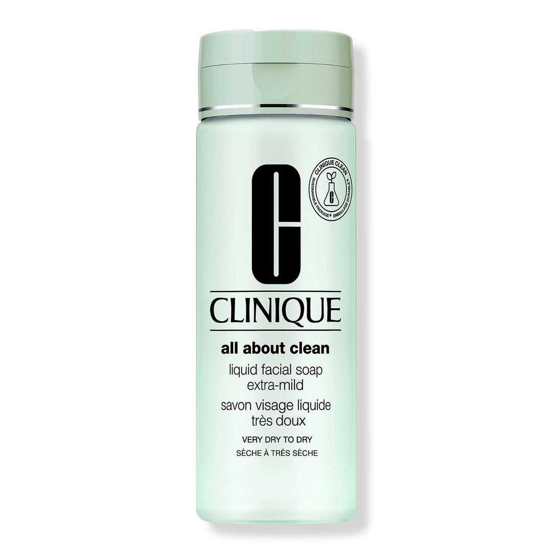 Clinique Liquid Facial Soap Cleanser is a dermatologist-developed gentle face cleanser that cleanses gently yet thoroughly.