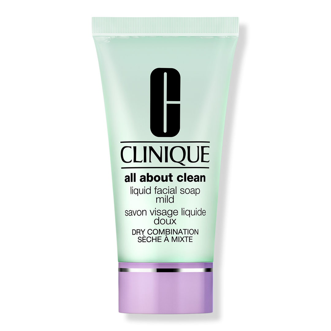 Clinique's bestselling All About Clean Liquid Facial Soap gentle cleanser is quick-rinsing and non-drying.