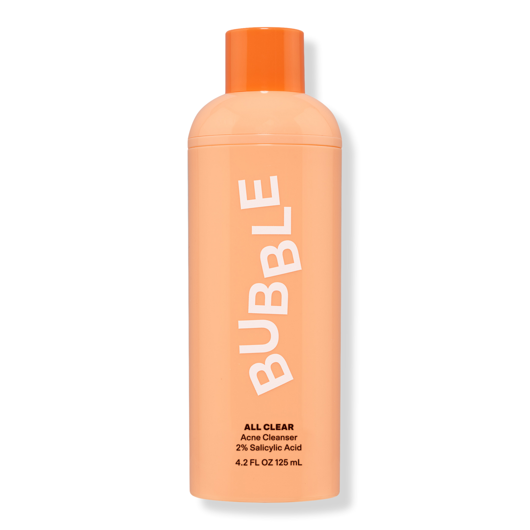 Bubble’s ALL CLEAR Anti-Breakout Cleanser with 2% Salicylic Acid helps prevent breakouts by clearing away dirt, oil, and other pore-clogging nasties.
