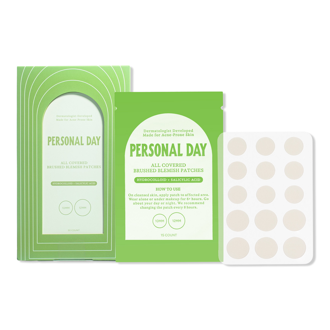 Treat and visibly flatten blemishes fast. Personal Day All Covered Salicylic Acid Brushed Blemish Patches use a new brush-on technique to infuse salicylic acid to the ultra-thin patch’s surface so it actually reaches skin and treats breakouts, while hydrocolloid absorbs gunk and helps healing.