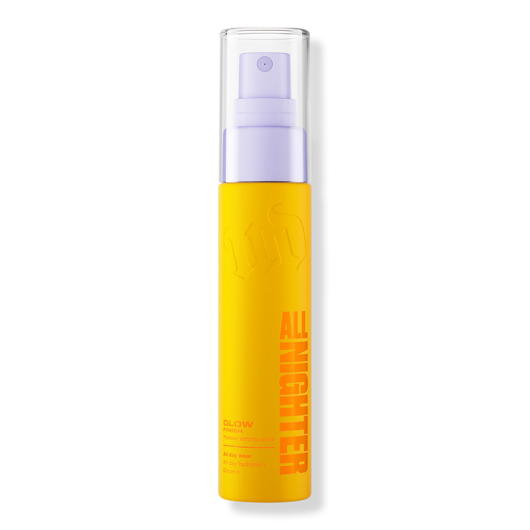 Urban Decay's All Nighter Glow hydrating setting spray locks in makeup for up to 24 hours with an ultra fine mist that delivers a waterproof, glass-skin glow that won't budge.