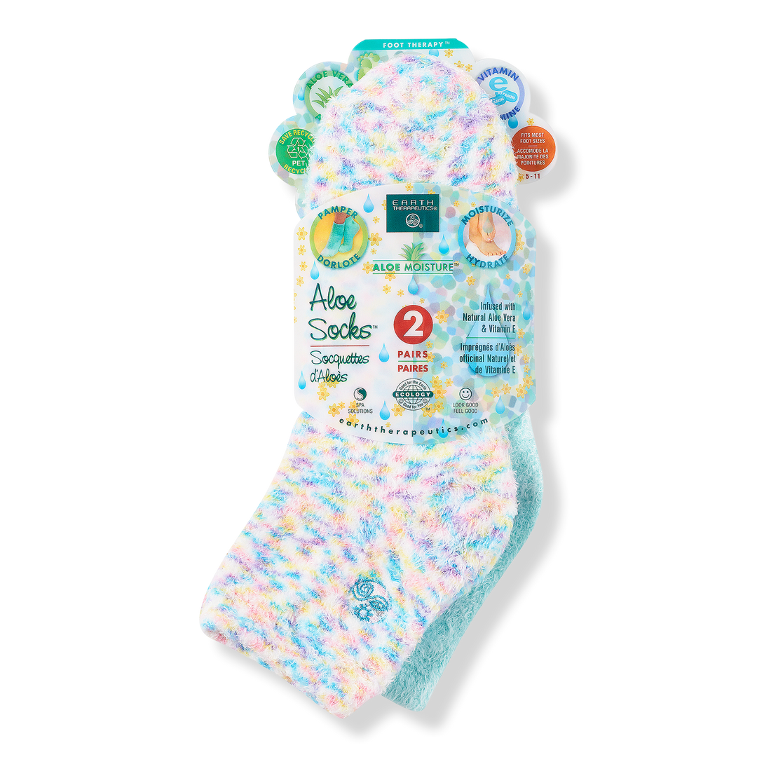 Aloe Vera infused Moisture Aloe Socks with Vitamin E pamper your feet in plush luxury. These 2 pack socks will moisturize and soothe the skin.