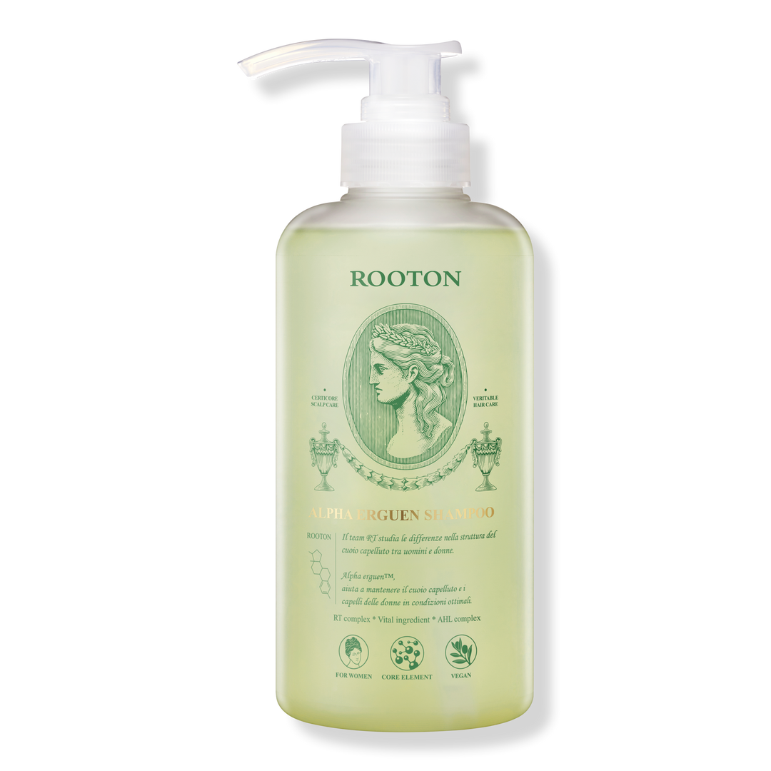 ROOTON Alpha Erguen Shampoo nutrient-rich formula stabilizes and helps balance the scalp environment. While cleansing and strengthening roots for fuller, revitalized hair. An effective shampoo for hair thinning.