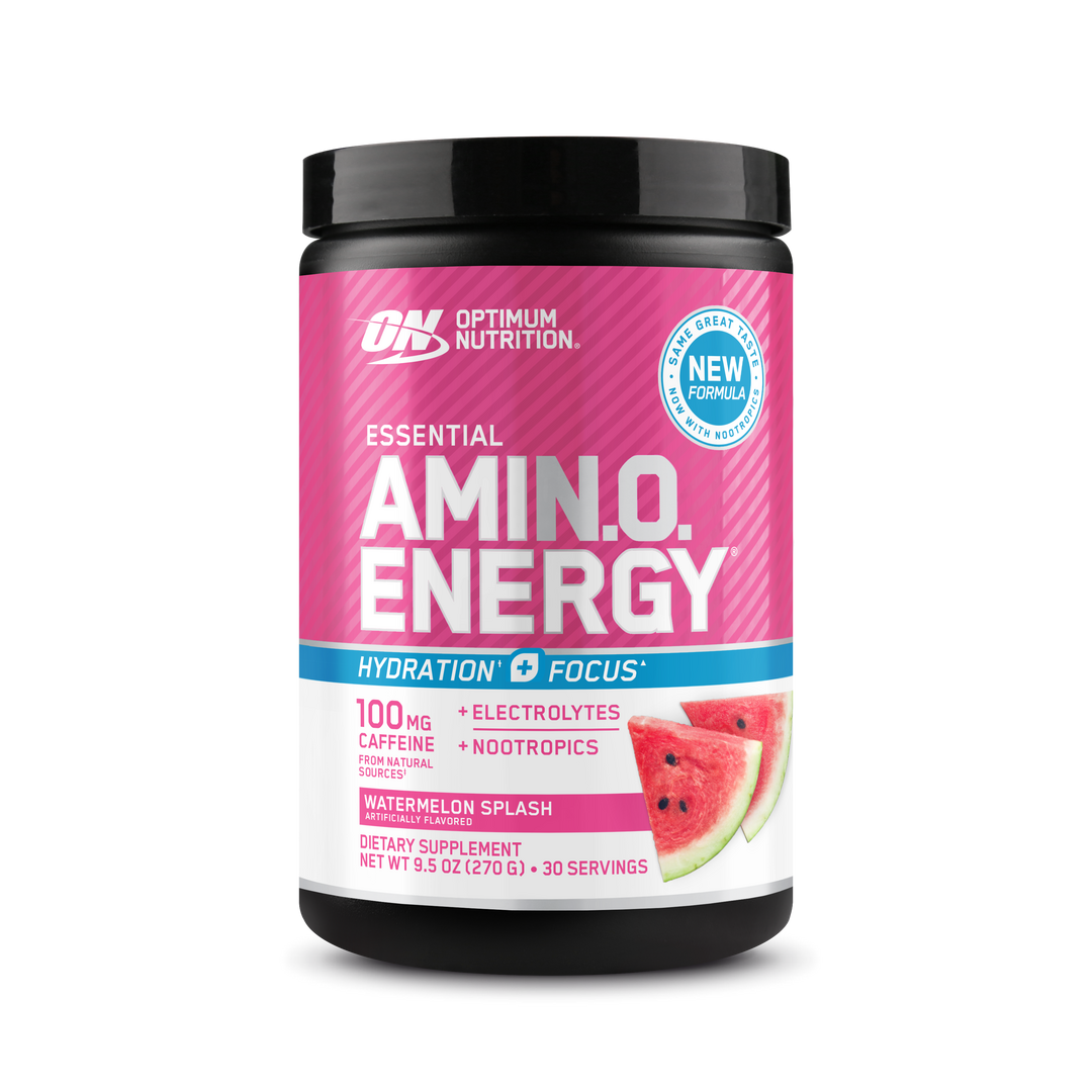 OPTIMUM NUTRITION® AMIN.O. ENERGY HYDRATION + FOCUS delivers the latest innovation to your fitness regimen. Dial up your energy, zero in on your workout, and get hydration support with our enhanced 3-in-1 formula with caffeine from natural sources, electrolytes, and nootropics in every serving.