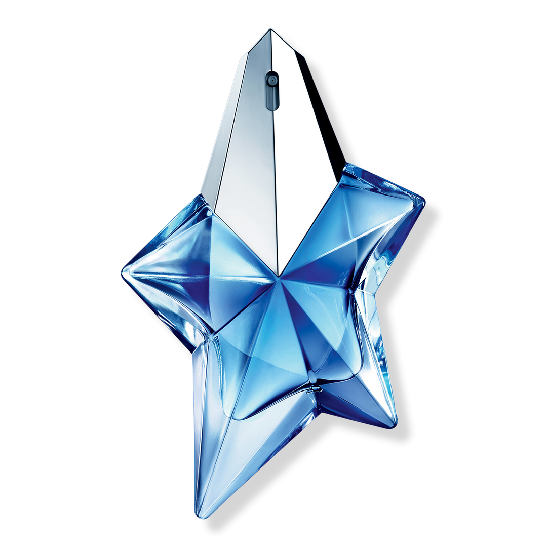 - The MUGLER Angel Star bottle features a dynamic composition of facets, balancing the sharp elements of the glass with the smooth, blue color of the precious Eau de Parfum.