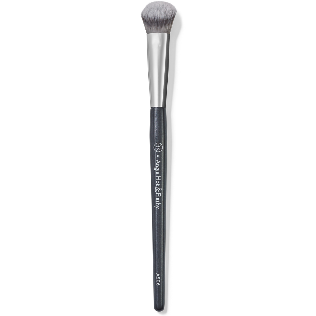 Compact “kitten paw” A506 concealer brush for precise under-eye and spot application. Pat to blend seamlessly; also useful for nose-area concealing and small-area contouring. Part of the 7-piece Angie Hot & Flashy set for mature skin.