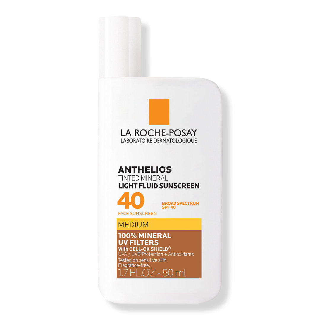 La Roche Posay Anthelios Tinted Mineral Fluid Sunscreen SPF 40 is a lightweight, non-greasy, face sunscreen, offering broad spectrum UVA/UVB protection with iron oxides to minimize white cast.