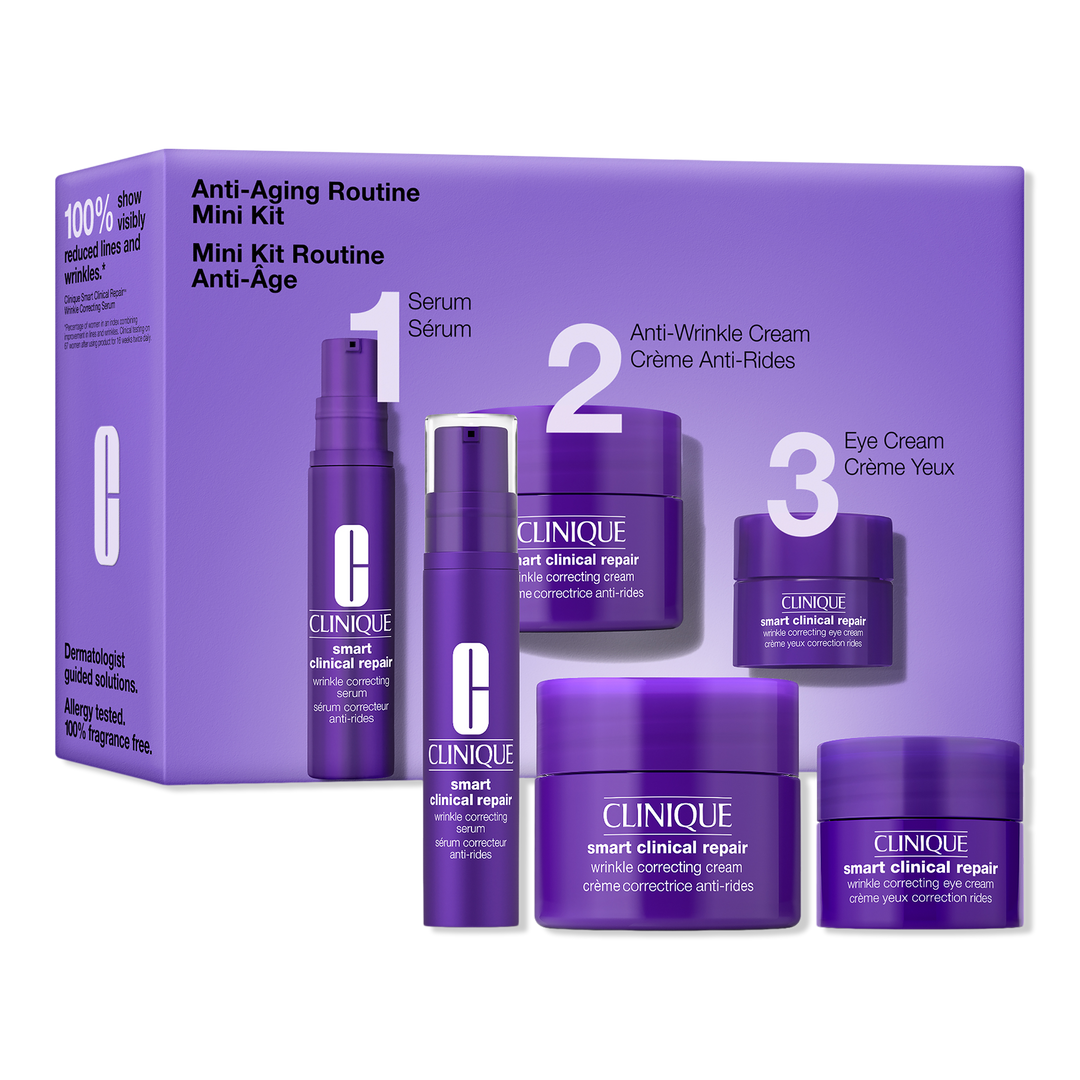 Clinique Anti-Aging Routine: Mini Smart Clinical Repair Skincare Set is a powerful anti-aging trio that helps outsmart wrinkles.