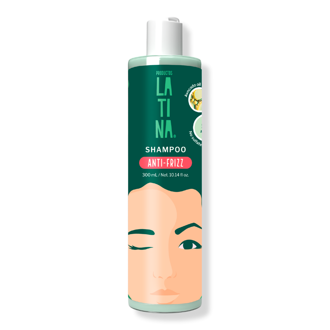 Productos LATINA Anti-Frizz Shampoo. Ideal to strengthen and add shine. With carrot seed oil and avocado oil.