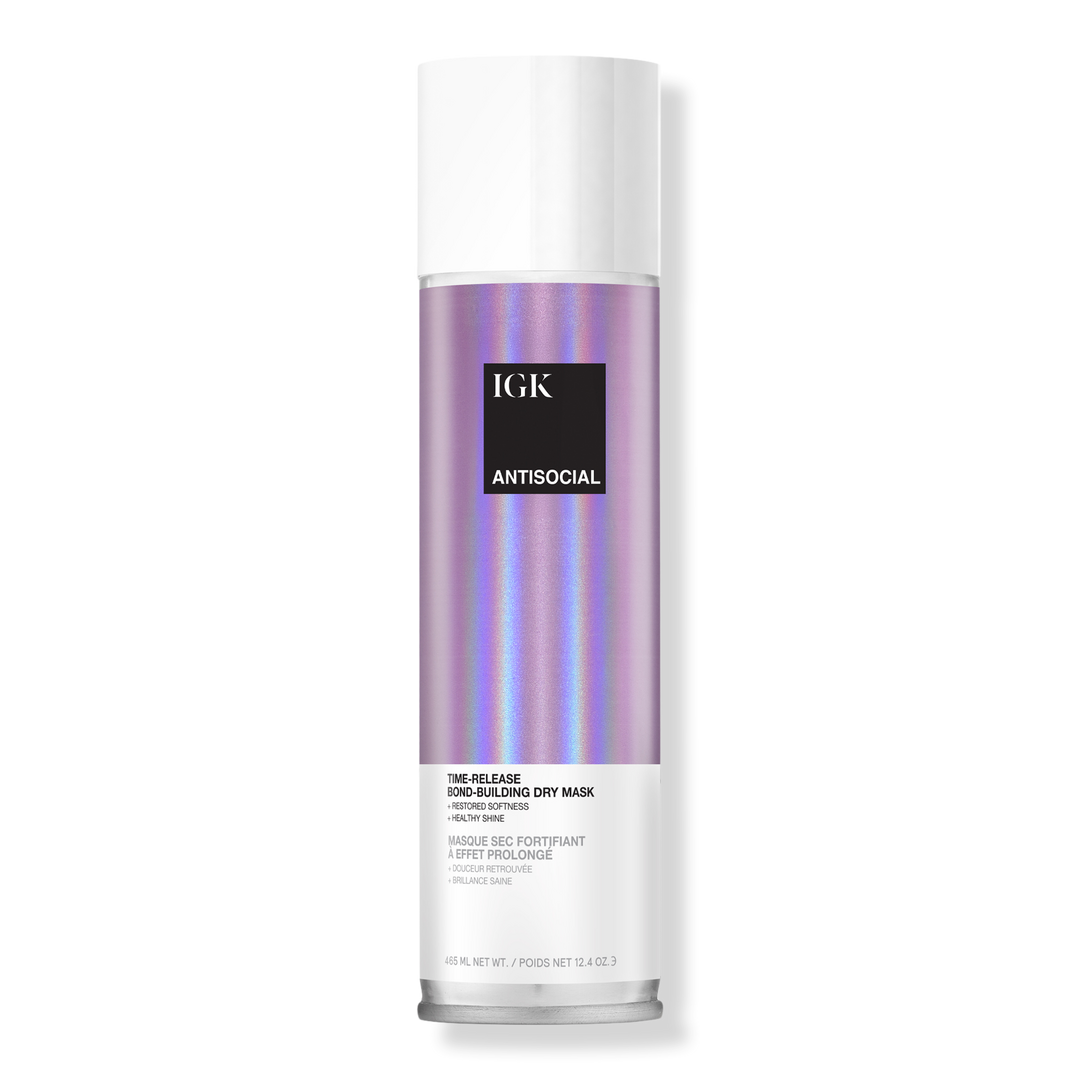 IGK's Antisocial Bond-Building Dry Hair Mask instantly repairs, softens, provides lightweight hydration and boosts shine, no need to rinse!